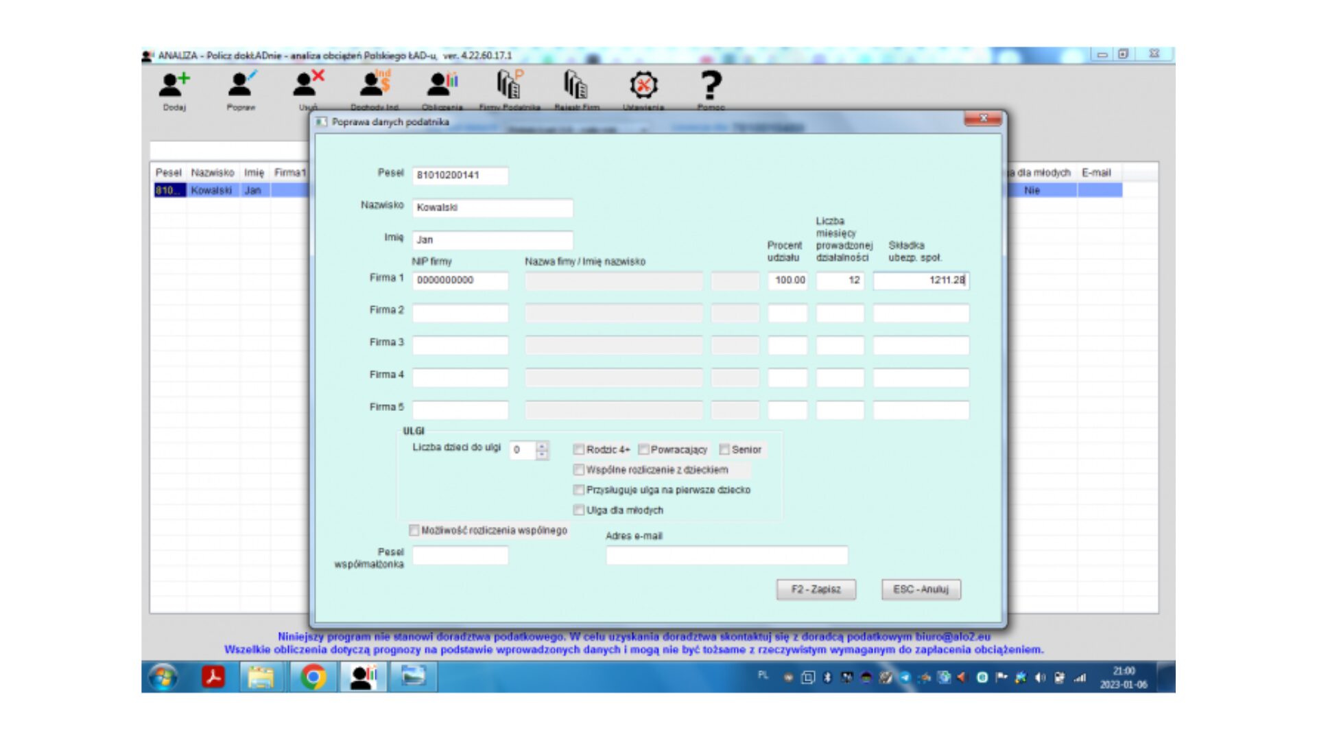 UWAGA! Program nie stanowi elementu usługi doradztwa podatkowego!